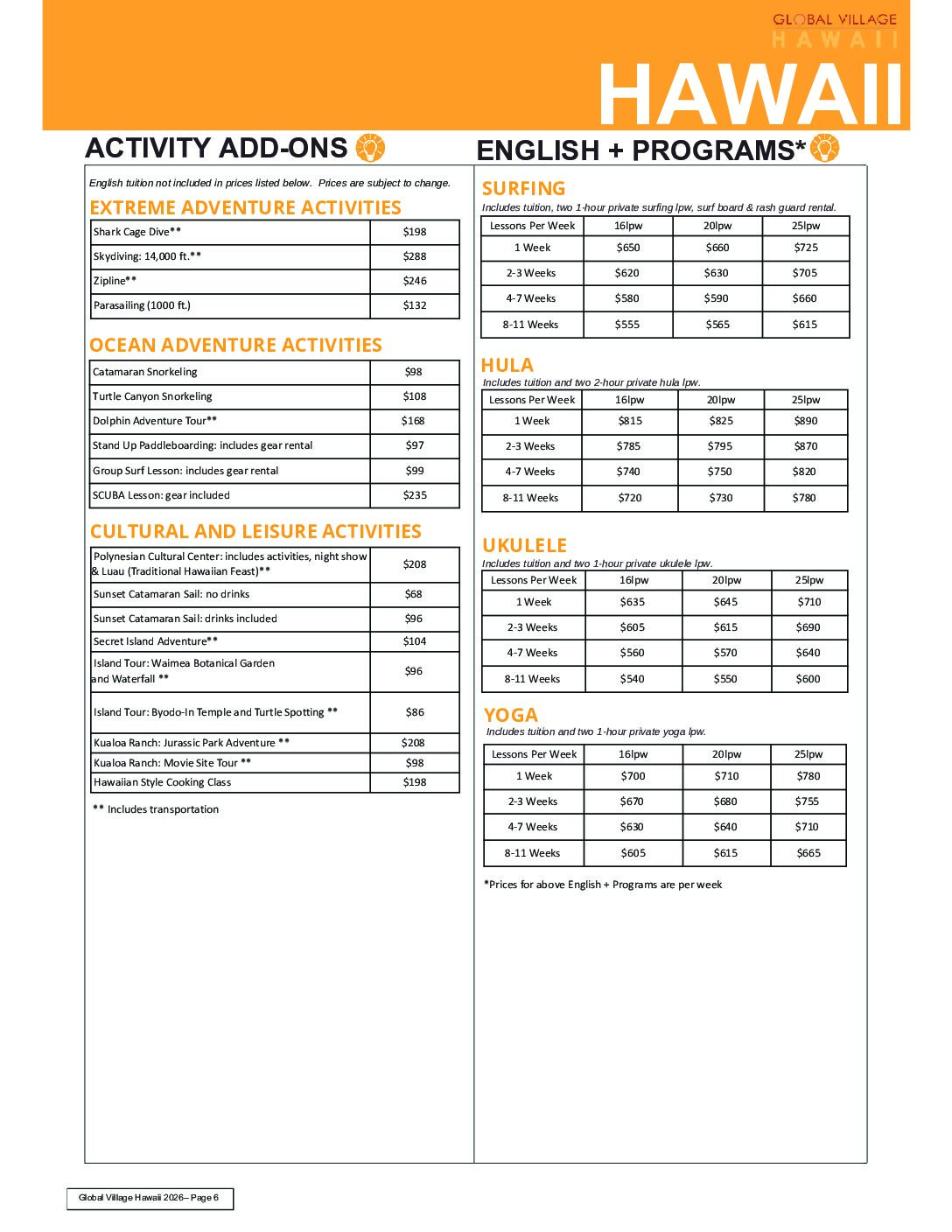 LEVEL GUIDE & WEEKLY SCHEDULE