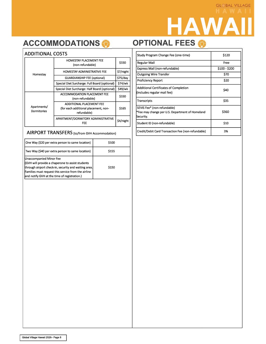 ACCOMMODATIONS and OTHER FEES