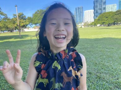 「ぼくは先生とクラスメートの両方がとてもいい人たちなので、学校が好きです。先生は様々な方法で英語を教えてくれ、楽しく面白い学習ができます。ハワイにはビーチや動物園など、遊びに行ける場所が多くあります。天気は台湾ほど暑くなく、快適です。」