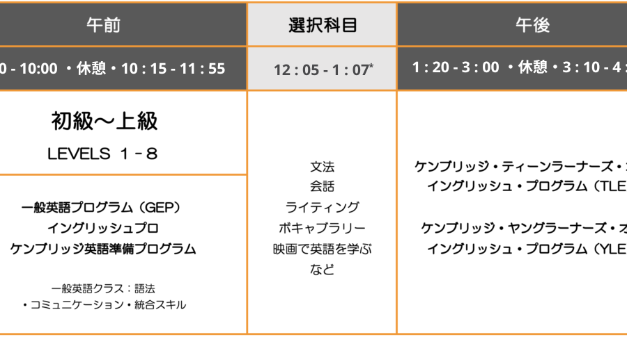 クラス時間割【改訂】 2026年より時間割が変更になります。 これまで以上